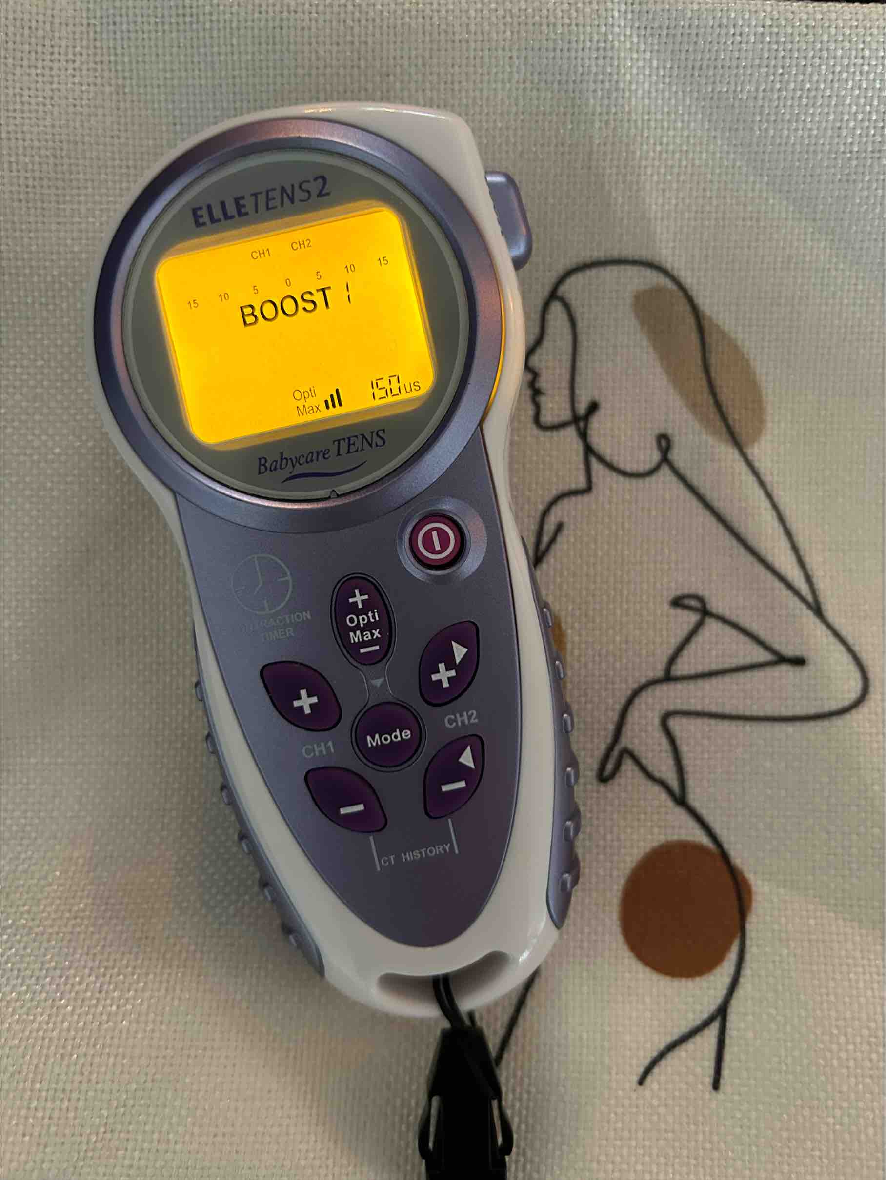 De geboorteTENS kun je op 2 standen gebruiken. De continue basisstand stimuleert de aanmaak van Endorfine. Jouw lichaamseigen pijnstiller. Ook kun je de ‘BOOST’ knop gebruiken. Deze blokkeert pijnprikkels waardoor je minder pijn kunt ervaren van de weeën